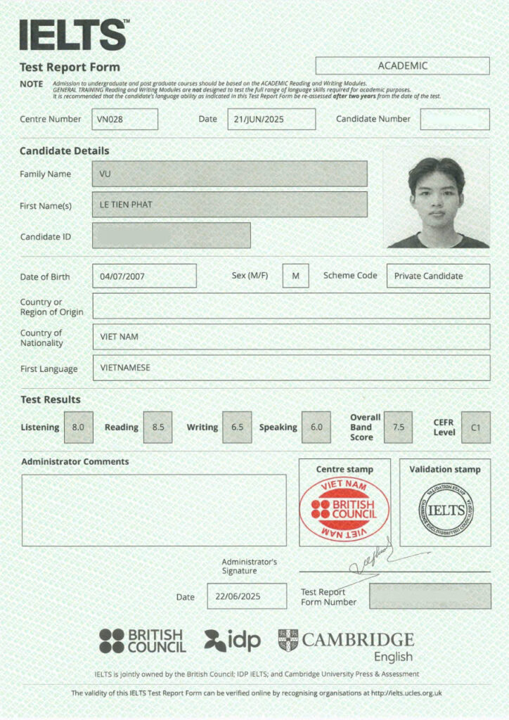 “IELTS 7.5 là kết quả của sự nghiêm túc, nỗ lực và chiến lược học tập đúng đắn” Trung tâm…